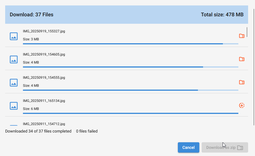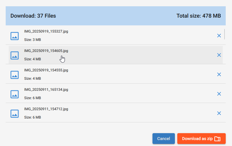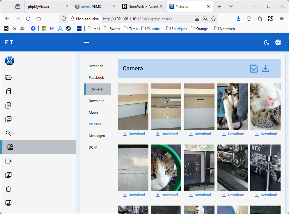 A partir de là, je peux télécharger individuellement des images, ou en sélectionner plusieurs, ou tout télécharger dans un fichier zip.