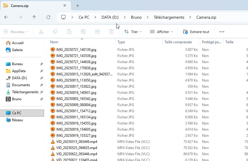 Toutes mes photos et vidéos sont désormais sauvegardées sur mon PC. Je conseille de copier ce fichier zip sur un support externe.