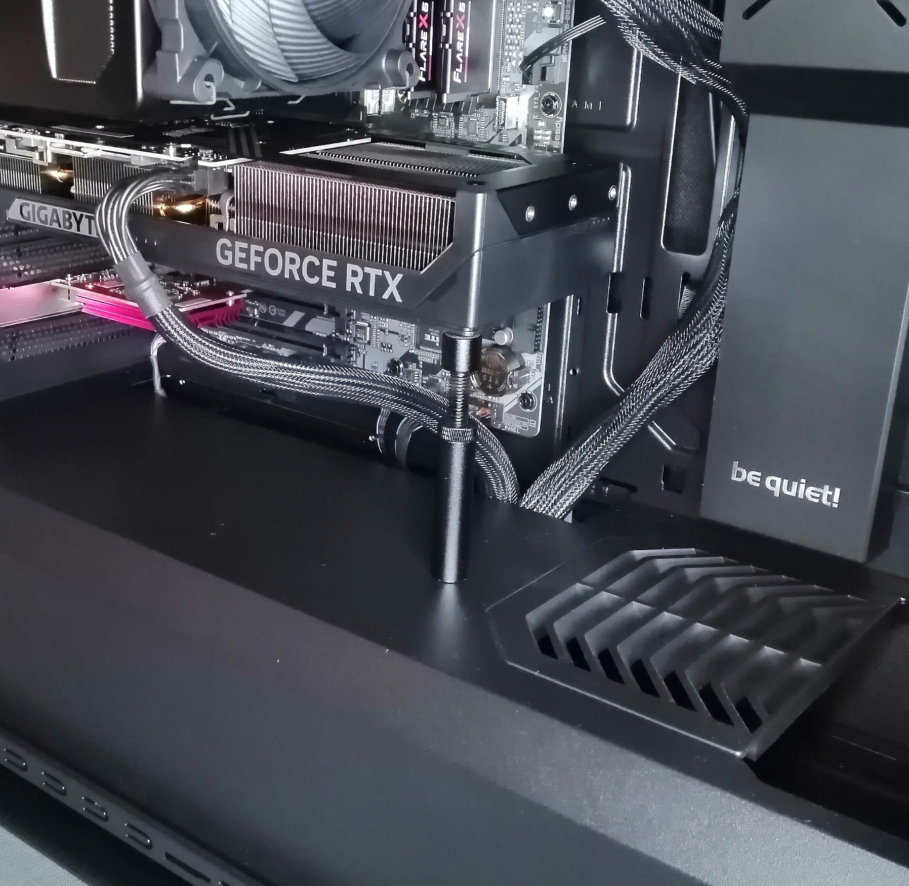 Pour éviter que la carte graphique ne "tire" trop sur la carte mère, j'ai ajouté un petit support, tout simple mais fait le job.